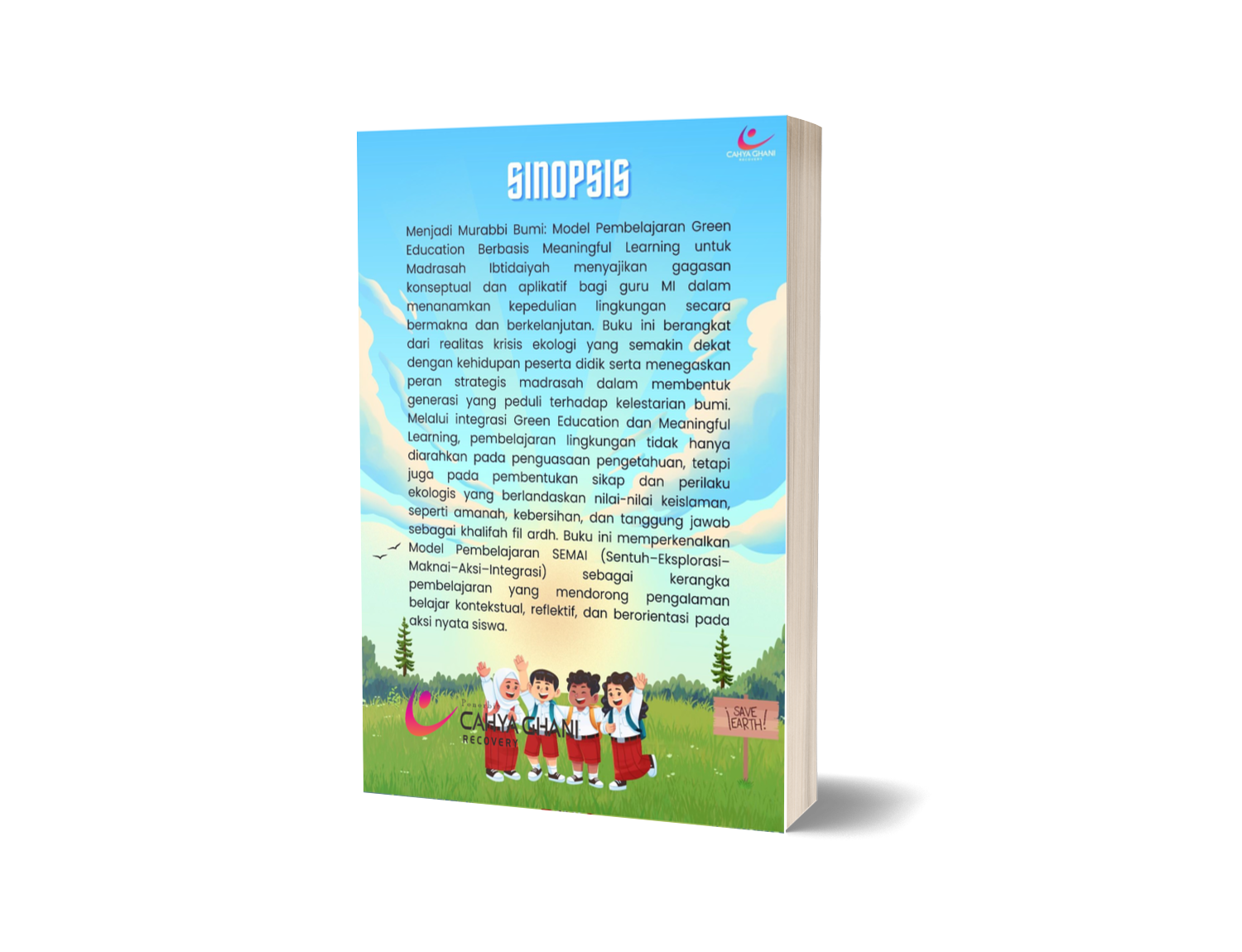 buku Menjadi Murabbi Bumi: Model Pembelajaran Green Education Berbasis Meaningful Learning untuk Madrasah Ibtidaiyah ini dapat hadir sebagai ikhtiar kecil dalam merespons tantangan besar pendidikan lingkungan di Indonesia. Krisis ekologi mulai dari perubahan iklim, menurunnya kualitas air, hingga maraknya sampah plastik bukan lagi isu global yang jauh di sana. Ia kini telah menjadi realitas yang dirasakan langsung oleh peserta didik kita. Dalam kondisi inilah pendidik Madrasah Ibtidaiyah memegang peran strategis sebagai teladan, pembimbing nilai, sekaligus penjaga masa depan bumi.