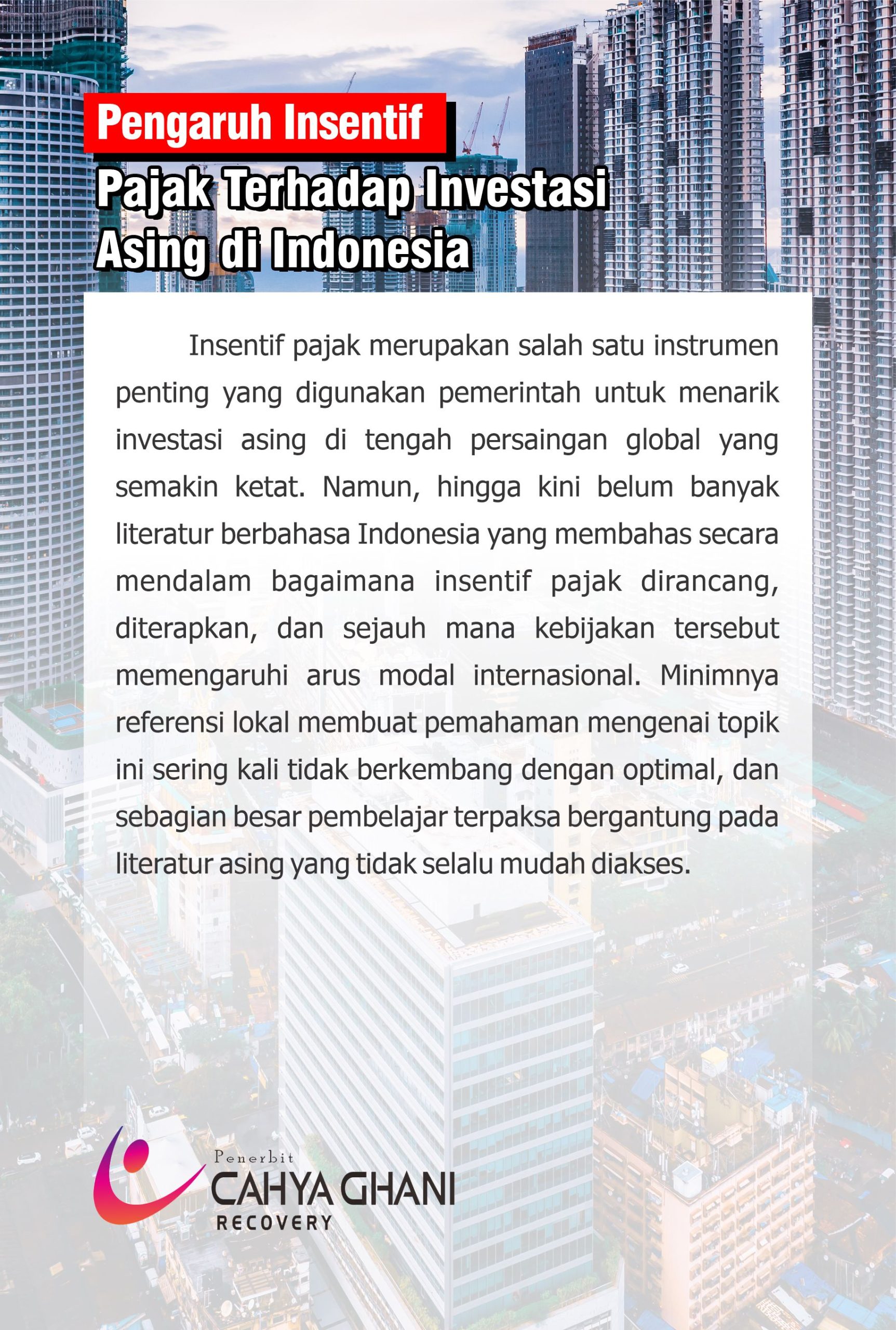 Insentif pajak merupakan salah satu instrumen penting yang digunakan pemerintah untuk menarik investasi asing di tengah persaingan global yang semakin ketat. Namun, hingga kini belum banyak literatur berbahasa Indonesia yang membahas secara mendalam bagaimana insentif pajak dirancang, diterapkan, dan sejauh mana kebijakan tersebut memengaruhi arus modal internasional. Minimnya referensi lokal membuat pemahaman mengenai topik ini sering kali tidak berkembang dengan optimal, dan sebagian besar pembelajar terpaksa bergantung pada literatur asing yang tidak selalu mudah diakses.